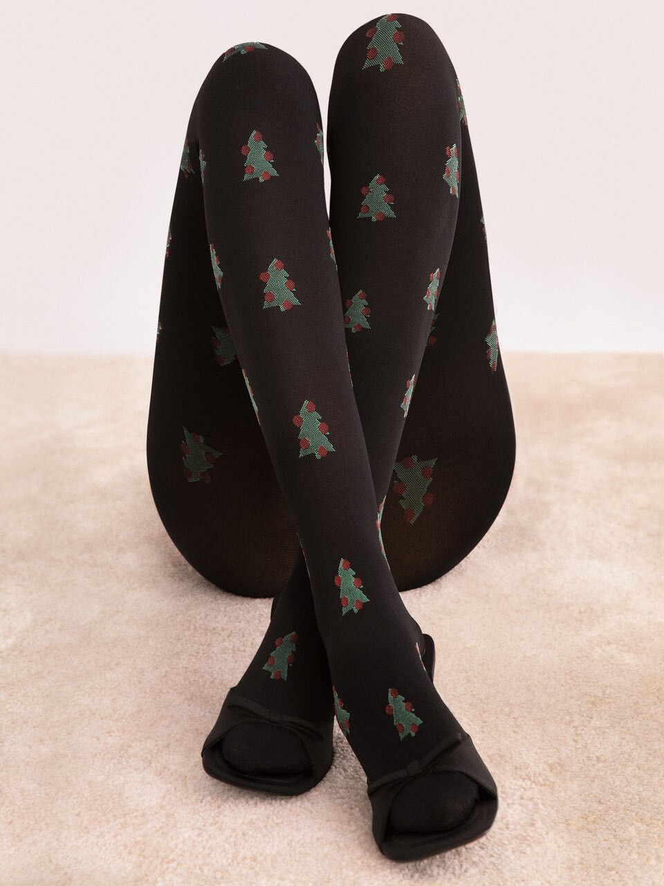 Czarujące rajstopy z wzorem w drobne choinki to zachwycający dodatek w Twojej garderobie, który doskonale oddaje ducha okresu świątecznego. Te rajstopy łączą modę i odświętność, pozwalając uwydatnić okazję i zwrócić uwagę na Twój strój, jednocześnie nie przytłaczając go. Niezależnie od tego, czy wybierasz się na przyjęcie świąteczne, spędzasz przytulny wieczór w domu, czy po prostu dodajesz odrobinę świątecznej radości do swojego codziennego stroju, te rajstopy są idealnym wyborem. Można je nosić z elegancką czarną sukienką czy odświętną spódnicą, a nawet ze spodniami przed kostkę, by cieszyć się modnym i zabawnym świątecznym akcentem. Poczuj magię świąt i przykuj uwagę wszystkich wokół. Lśniąc jak gwiazda na szczycie udekorowanego drzewka od razu poczujesz radość i świąteczną atmosferę!